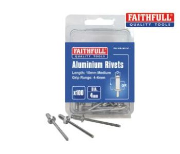 The Faithfull Pop or Blind rivets are manufactured from quality aluminium with a steel pulling mandrel. These rivets are suitable for use with most hand riveters and are RoHS compliant for use in electrical appliances.