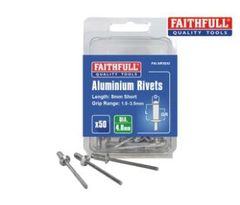 The Faithfull Pop or Blind rivets are manufactured from quality aluminium with a steel pulling mandrel. These rivets are suitable for use with most hand riveters and are RoHS compliant for use in electrical appliances.