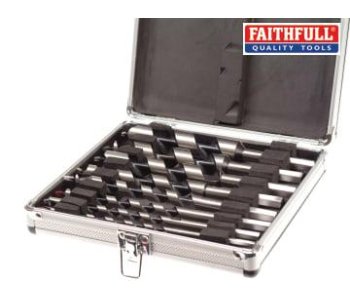 The auger bits in this Faithfull 8 Piece Combination Auger Bit Set can be used in either a hand or power drill at low speeds. Machined from high-quality carbon steel, they feature a pitched screw point for accurate starting with a wide flat spiral for improved stability, straight tracking and fast waste removal. Augers may be used in timber, plywood, MDF and block wood and can be resharpened using a hand file.