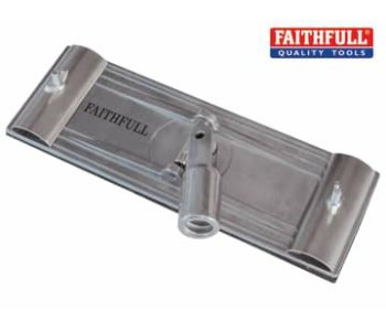Faithfull Drywall Pole Sander Head manufactured from heavy-duty aluminium and fitted with a universal joint that enables the head to stay in contact with the surface being sanded. A foam backing pad and metal locking clamps ensure that the abrasive paper is securely held in position.