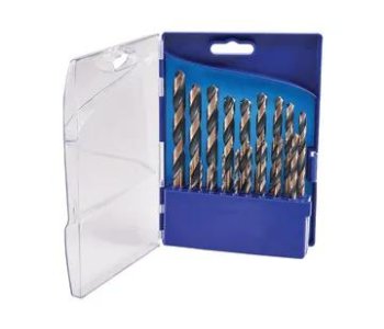 Supplied in a robust plastic case securing and protecting the drills. The contents can easily be viewed through the flip action transparent lid. Do not miss!