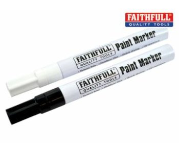 Paint Marker Pen Black & White (Pack 2)Faithfull Paint Markers can write on virtually any surface including timber, concrete, ceramics and metals. The paint is quick-drying, Xylene free and UV resistant. Suitable for outdoor use.