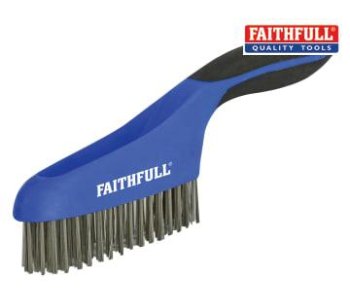 Faithfull range of quality scratch brushes, manufactured using a heavy-duty plastic handle with a soft grip coating. The ergonomically designed handles are comfortable to use and provide good clearance for the hand from the work surface. Each brush has a high density bristle content at both ends where the most force is focused when in use, for a better performance and longer working life.