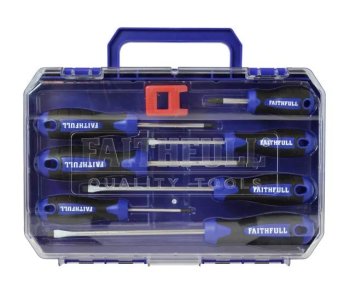 The Faithfull 8 Piece Screwdriver Set is a versatile set featuring the seven most popular Slotted, Phillips and Pozidriv screwdrivers, with correctly hardened and tempered Chrome Vanadium steel blades and full size bi-material soft-grip handles for maximum user comfort and firm non-slip grip.