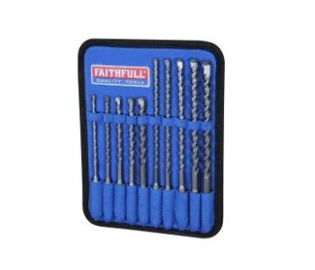10 Piece Faithfull SDS Plus Drill Bit Set supplied in a fabric storage wallet.