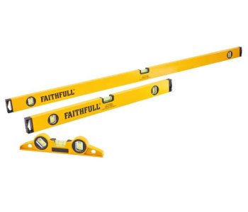 2 x Box Section Spirit Levels ideal for both DIY and professional use. They are manufactured from aluminium extrusion with a resilient powder-coated finish, making them lightweight, strong and easy to keep clean. The bottom face is milled for high flatness. Each level is fitted with 3 solid vials, 2 plumb and 1 horizontal, which have a measurement accuracy of ñ 0.5mm/m. The horizontal vial is dome-shaped to allow reading from any viewing angle. The shock-resistant, rubberised end caps protect the level if dropped, reduce slippage on the measuring surface, and feature hanging holes for easy storage.