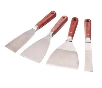Consists of four top quality wooden handled professional decorating cutlery. It includes the most popular tools for stripping and filling tasks; two Filling Knives - 1in (25mm) and 2in (50mm), and two Scrapers - 3in (75mm) and 4in (100mm).