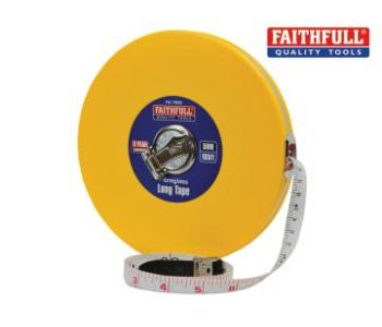 The Faithfull 50m/165ft Fibreglass Long Tape has both metric and imperial measurements.