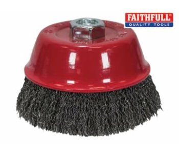 Faithfull Crimped Wire Cup Brush for lighter to medium-duty applications such as cleaning metal surfaces prior to painting. Designed for use with a compatible thread angle grinder.