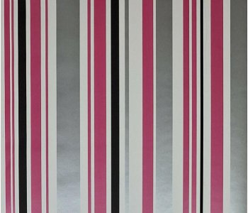 FD14872 Poppie Pink Silver and Black Stripe Wallpaper.