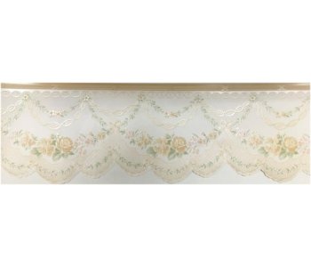 Pattern: The border features intricate floral patterns with garlands of flowers and leaves. The flowers include roses and other small blossoms, arranged in a repeating, symmetrical design.