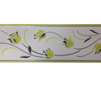 FDB05652 Fine Decor Textured Lime Vinyl Border.A textured border with a lime green and black flower modern design and cream background with a lime green trim. Pattern repeat 64cm. 5 meters in length.17.5cm in height.