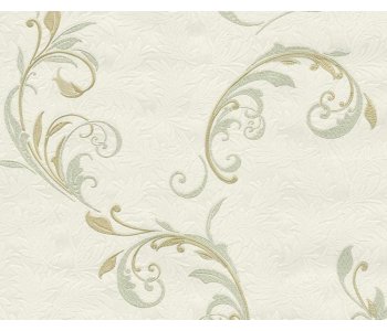Introducing the GB8843 Liana Green Heavyweight Vinyl Wallpaper, a luxurious addition to any space. This stunning wallpaper features enchanting green and gold foliage scrolls that effortlessly elevate the ambiance of your room. The green leaves are adorned with a subtle shimmer, creating a captivating and opulent finish against a crisp white / ivory background.
