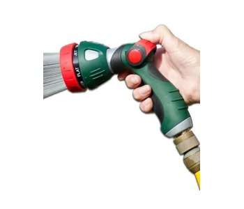 7 Function Hose GunPRODUCT INFOIdeal for watering your garden & washing cars, trucks, caravans etc. Features 7 different spray patterns, lockable trigger control water flow plus universal male connector & zinc body with ergonomic soft grip.