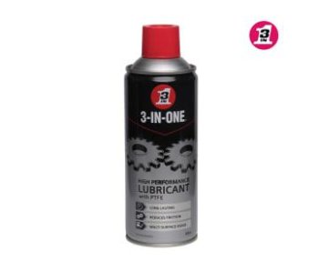 3-IN-ONE high performance lubricant is an advanced PTFE synthetic flouropolymer formula which provides outstanding lubrication and corrosion protection under extreme temperature, pressure and motion. Friction and wear is dramatically reduced on all moving parts which also extends the life of tools and machinery. Suitable for use on all metal and non-metal surfaces including wood, glass, vinyl, rubber and plastics (except polycarbonate and polystyrene). This high performance lubricant will also drive out moisture and is capable of withstanding extreme temperature from -45 ø to