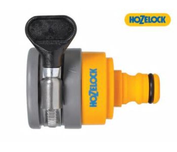 2177 Round Mixer Tap Connector Max. 24mmThe Hozelock Round Tap Connector designed for round and oval spout taps. The fitting is sealed to the tap by tightening the stainless steel clip.