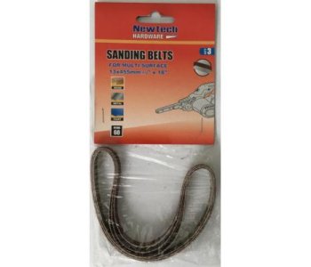 NEWTECH HARDWARE 91106 60 GRIT SANDING BELTS 13MM X 455MM NEWTECH HARDWARE SANDING BELTSFOR MULTI SURFACE13MM X 455MM / 1/2" X 18"FOR WOOD, METAL AND PAINTREF - 91106GRIT 603 BELTS PER PACK