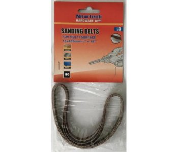 NEWTECH HARDWARE 91108 80 GRIT SANDING BELTS 13MM X 455MM NEWTECH HARDWARE SANDING BELTSFOR MULTI SURFACE13MM X 455MM / 1/2" X 18"FOR WOOD, METAL AND PAINTREF - 91108GRIT 803 BELTS PER PACK