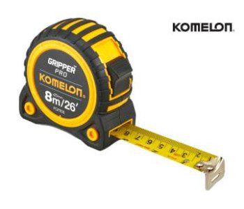 The Komelon GripperT Tape has a durable, nylon-coated blade with a true zero end-hook and a top blade lock. The blade features both metric and imperial markings. Contained within an ergonomically designed ABS case, with a rubber outer for increased durability and added protection. It also has a handy belt clip.