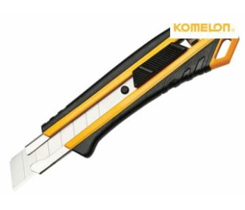 The Komelon Autolock Snap-Off Knife is fitted with an ergonomic, soft grip handle for increased comfort and a secure grip. The extra heavy-duty blade is made from SK2Cr4 steel and features a strong, sharp edge. It also has a high strength, stainless steel blade guide (HV170).