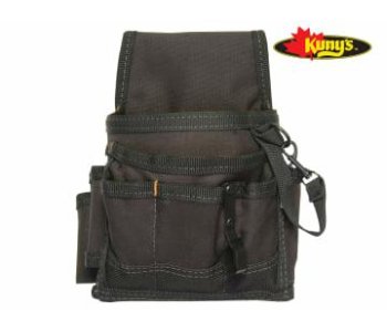 The Kuny's EL-1503 Electrician's Pouch made from tough polyester fabric which can be attached to a belt via the belt loop or the heavy-duty snap clip on the back. The pouch has nine pockets - three internal pocket sleeves and six external pockets. With handy sling to carry electrical tape.