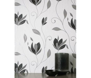 M1719 Synergy Floral Black Blown Vinyl Wallpaper.