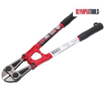 Olympia Tools Centre Cut Bolt Cutters with heat treated, high carbon steel compound action blades. Tubular steel handles with non-slip rubber grips. Ideal for cutting wire, chain, and bolts.