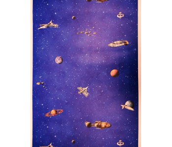 This vibrant wallcovering features a captivating design of a deep blue sky adorned with planets and space crafts, creating a stunning visual display that is out of this world.