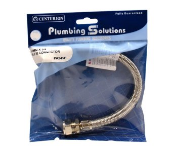 PA245P 15mm x 3/4" x 30 Flexible Tap Connector. An alternative to hard piping to a tap and easier and quicker to install in confined spaces. Flexible tap connector Standard bore With nickel plated brass fittings WRC approved.