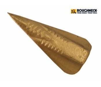 Roughneck Wood Grenade© Splitting Wedge has a diamond shaped cross section and provides splitting of the log in 4 directions. Spherical striking face provides a centred and efficient blow. The notches prevent pop out from the log being split.