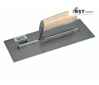 This R.S.T. Plasterers finishing trowel has a strong and durable carbon steel blade, which is fixed with invisible rivets. Finishing trowels are used in smoothing and finishing the surface of plaster. They help to compact the surface and add to the quality and durability of the work.