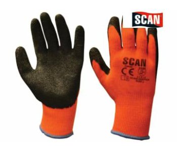 Scan Thermal Latex Coated Gloves have a high visibility design with black latex wrinkle finish coating to palm and fingers. They give excellent grip in both wet and dry conditions. Ideal for the construction, automotive and handling industries. With palm and finger coated latex and high-visibility seamless acrylic knitted thermal liner.