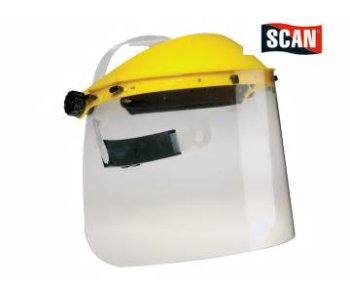 This Scan face shield and visor is a good all-round lightweight brow guard with a polycarbonate face shield that offers unrestricted working vision and protection against medium energy flying particles and liquid splashes. It has an adjustable head harness to ensure comfortable fit over most head sizes. Its 'Flip-up' visor mechanism allows full adjustment of the visor.