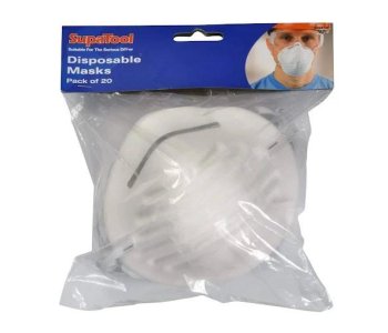 SG410 Pk20 Disposable Face Masks.Disposable mask.Suitable for non-toxic dusts only.Ideal for DIY use.Colour: White.Size: Standard.