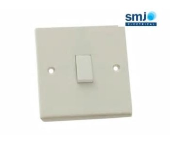SMJ Traditional profile single or double light switch made from white plastic. Suitable for interior use.