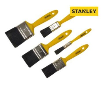 Hobby Paint Brush Set of 5 12 25 37 50 & 62mmThe Stanley Hobby paint brush has pure black bristles and a rust resistant ferrule. The yellow polypropylene handle is shaped for comfort.