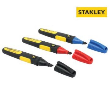 STA047315 FatMax© Chisel Tip Marker (Pack 3)A pack of 3 permanent markers.Quick drying and oil resistant ink marks on almost any surface.The chisel tips allow for 2 distinct lines (broad and fine).Black, blue and red markers included.