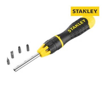 The Stanley 0-68-010 Multibit Ratchet Screwdriver features a patented bit storage system for ease of visibility, access and security. It also has a spring loaded, hard wearing, ball bearing indexing mechanism for quick and easy access.