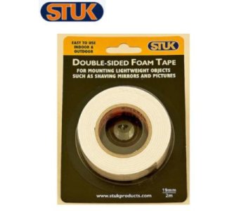 STUK FOAM TAPE DOUBLE SIDED 19MM X 2M WHITESTUK DOUBLE SIDED FOAM TAPEFOR MOUNTING LIGHTWEIGHT OBJECTS SUCH AS SHAVING MIRRORS AND PICTURESPREMIUM ADHESIVEINDOOR AND OUTDOOREASY TO USE19MM X 2MWHITE