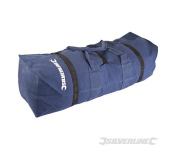 Canvas Tool Bag Large. Large capacity tool bag made of heavy cotton canvas. Rope handles, heavy duty nylon webbing straps with strong plastic buckles. 760 x 430 x 215mm.