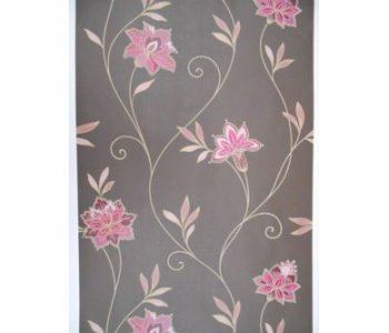 V.335-09-P053 Brown background with Pink Flower and Stem Design Wallpaper.