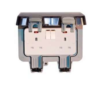 WP22 IP66 2 Gang Outdoor Socket.Features:Neon indicator.Supplied with multiple knockout mounting box.