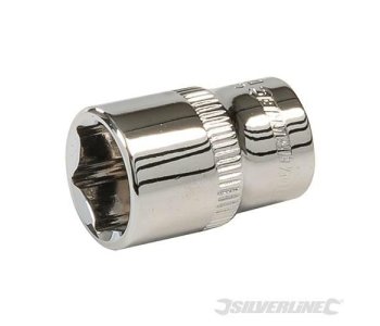 6-point hex socket for maximum torque transfer to the face of the fastener. Precision cold-forged, hardened and tempered chrome vanadium steel. Fully polished and nickel chrome-plated for durable corrosion resistance. Chamfered ends and thin walls for positive location on fastener. Knurled ring gives grip and control, and bearing hole provides solid connection to the tool.
